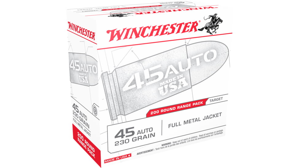 - Winchester USA HANDGUN .45 ACP 230 grain Full Metal Jacket Brass Cased Centerfire Pistol Ammunition